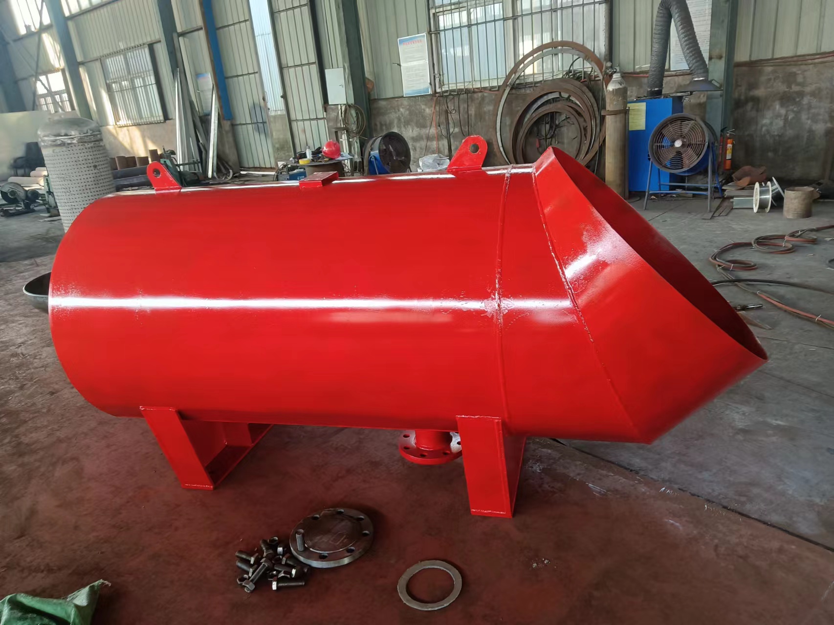 4、在設(shè)計(jì)、制造時(shí)必須參照執(zhí)行GB150-1998《鋼制壓力容器》技術(shù)規(guī)定。為確保消聲器安全使用,消聲器在結(jié)構(gòu)上必需制定和滿足強(qiáng)度、差脹、位移、疏水、銹蝕余量和防被塊狀雜物擊傷的措施和要求。消聲器制造質(zhì)量應(yīng)由設(shè)計(jì)和主管機(jī)構(gòu)的專業(yè)人員進(jìn)行監(jiān)督檢查。